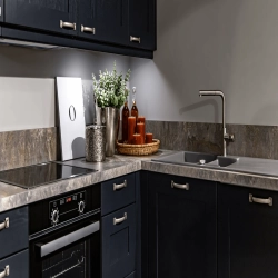Natural stone countertops are surfaces crafted from rock quarried directly from the earth. Unlike synthetic or engineered materials, natural stone is cut and polished from solid rock formations, giving each countertop its unique and distinctive appearance. Stone countertops are also prized for their unique patterns and strength. Whether it's granite, marble, or quartz, these surfaces are known for their long-lasting durability and resistance to wear. Each stone slab is unique, bringing sophistication and timeless beauty to your home.